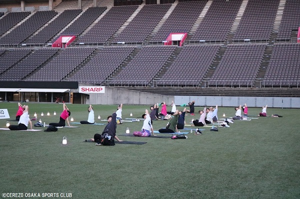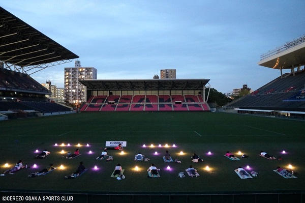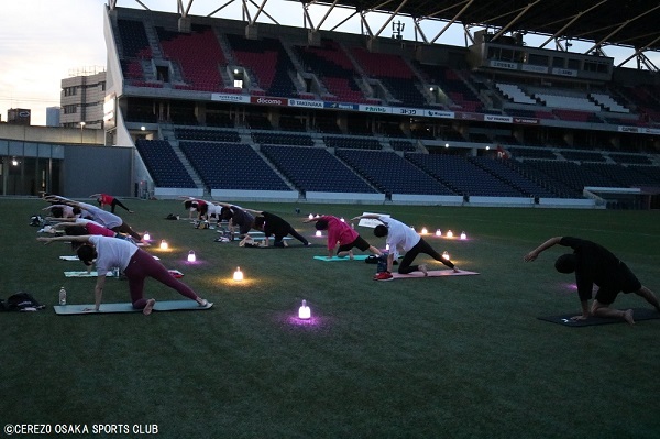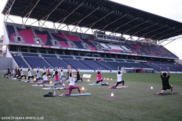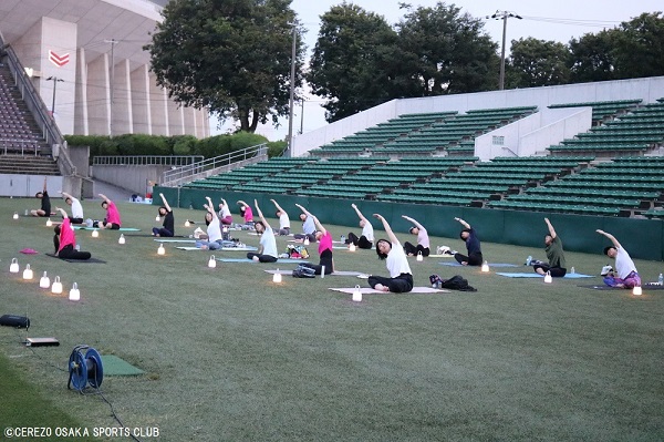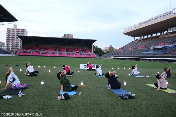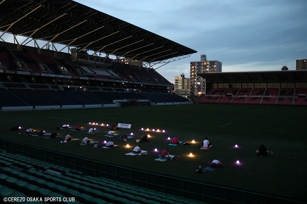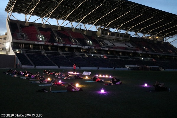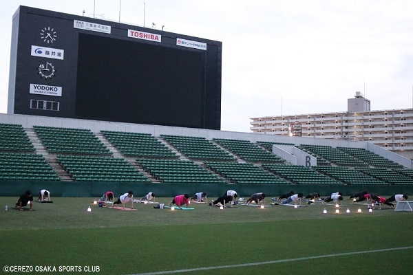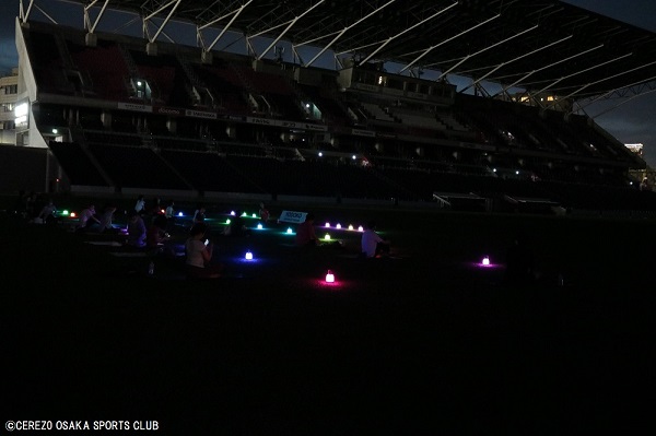 7月2日(日)ヨドコウ桜スタジアム人工芝で「sunsetのランタンヨガ」を開催しました。