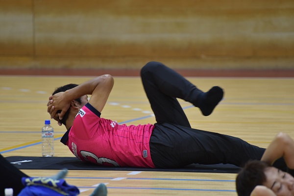 続いて、お腹まわりの筋肉を強化するエクササイズを行いました。