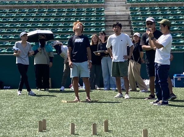 皆さんそれぞれのフォームで狙いを定め、モルックを投げるときの表情は真剣そのものです。
