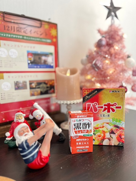 タマノイ酢株式会社から素敵なお土産「はちみつ黒酢しょうがカロリーオフ」「プレミアムパーポー」を皆さまにお渡ししました。