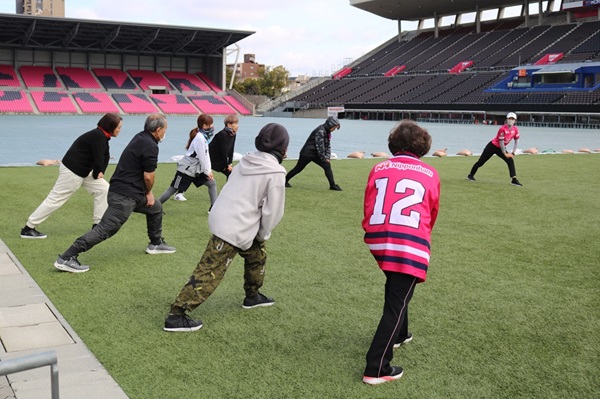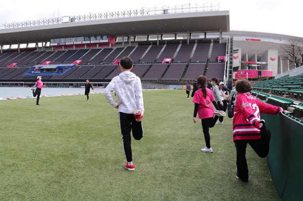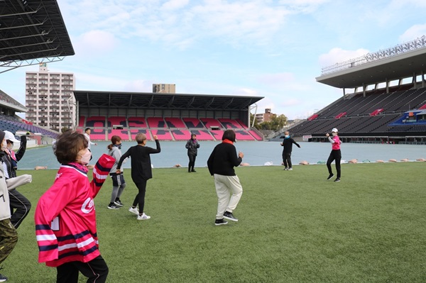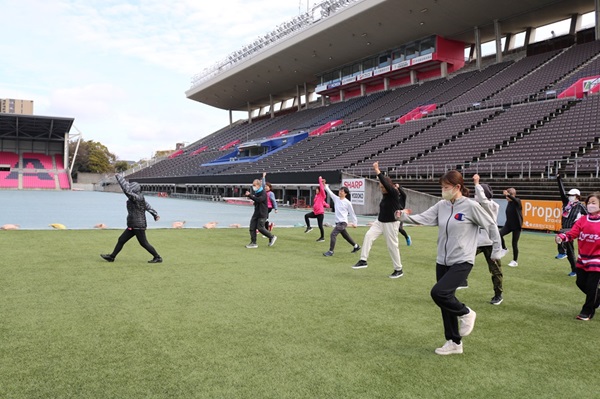 レポートReport イキイキはつらつ健康づくり「ウォーキング&ストレッチ」開催レポート 2024.02.06掲載 Twitter Facebook こちらのイベントは終了しました。 2月4日(日)ヨドコウ桜スタジアムで、イキイキはつらつ健康づくり「ウォーキング&ストレッチ」を開催しました。少し肌寒さも感じましたが、さわやかな青空の下、太陽のエネルギーをいっぱい浴びてウォーキングしていただきました。この時期のスタジアムは、天然芝の養生中で全面にシートがかけられており、いつもとは少し違う景色のなかで行いました。ウオーキングでは、体を傷めない歩き方と効率よく運動量をあげる歩き方をを教えていただきました。ストレッチも行うことで運動効果が更にあがります。最後は、記念写真をパシャリご参加いただいた皆さま、ありがとうございました! NEXT 一覧 PREV