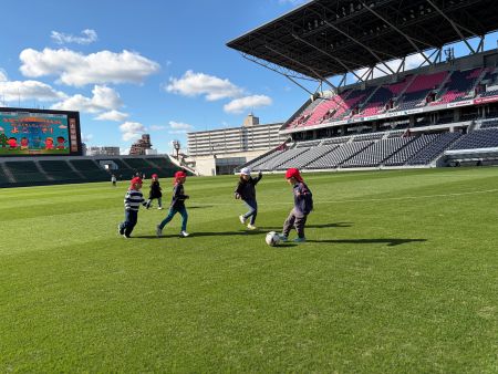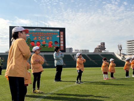 11月、12月で4園・約220名の園児の皆さんが来場し、スタジアムの天然芝ピッチを開放して、
