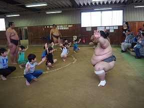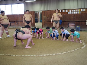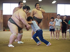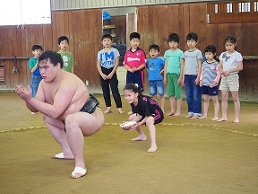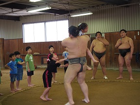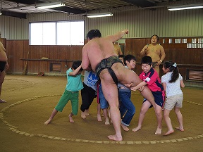 子どもたちにすもうの魅力を体験してもらいました。