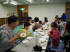 そのあとは、長居ユースホステルのホールで力士の方たちが作ってくださった、あったかーいちゃんこ鍋をみんなでいただきました。