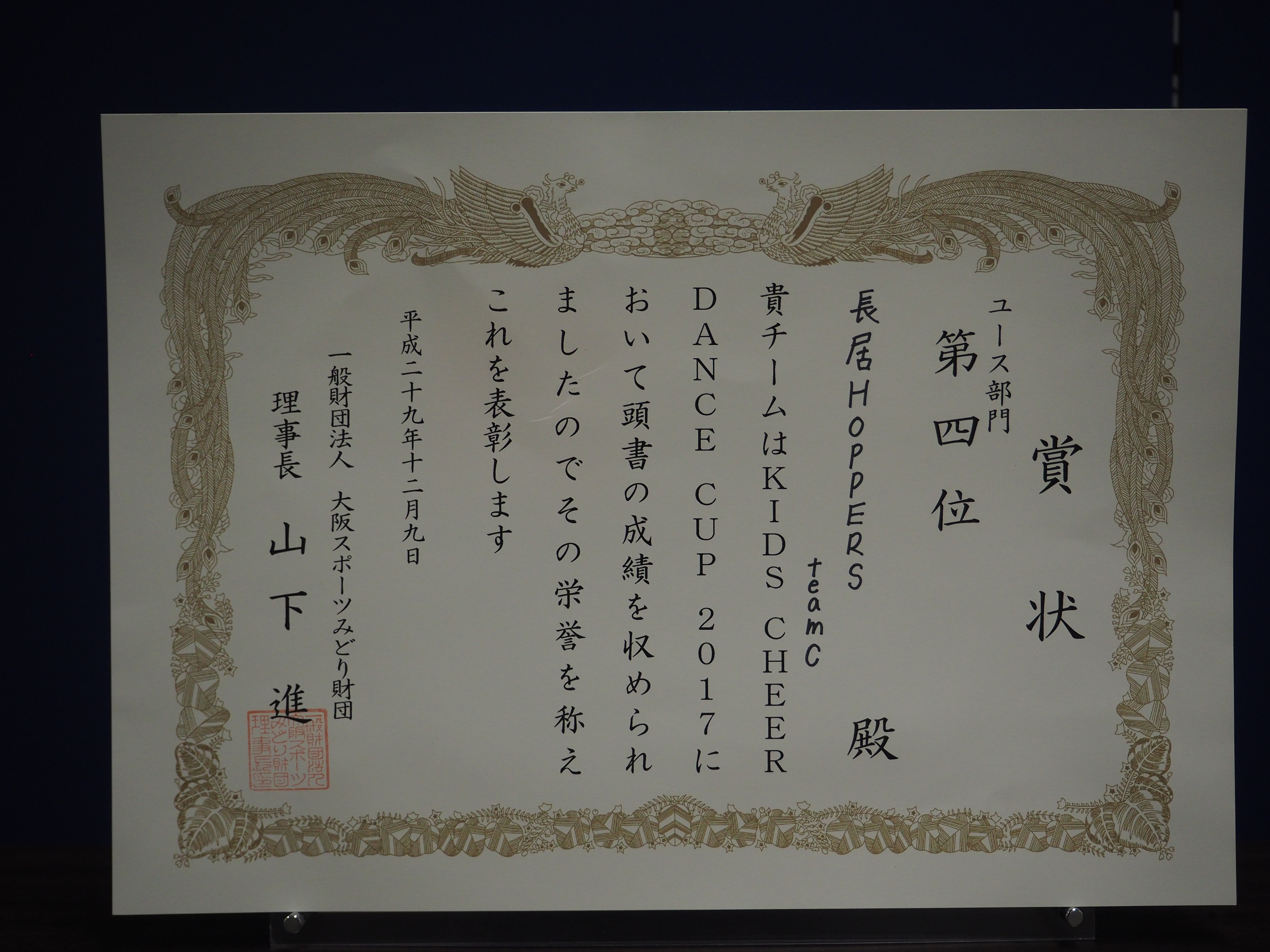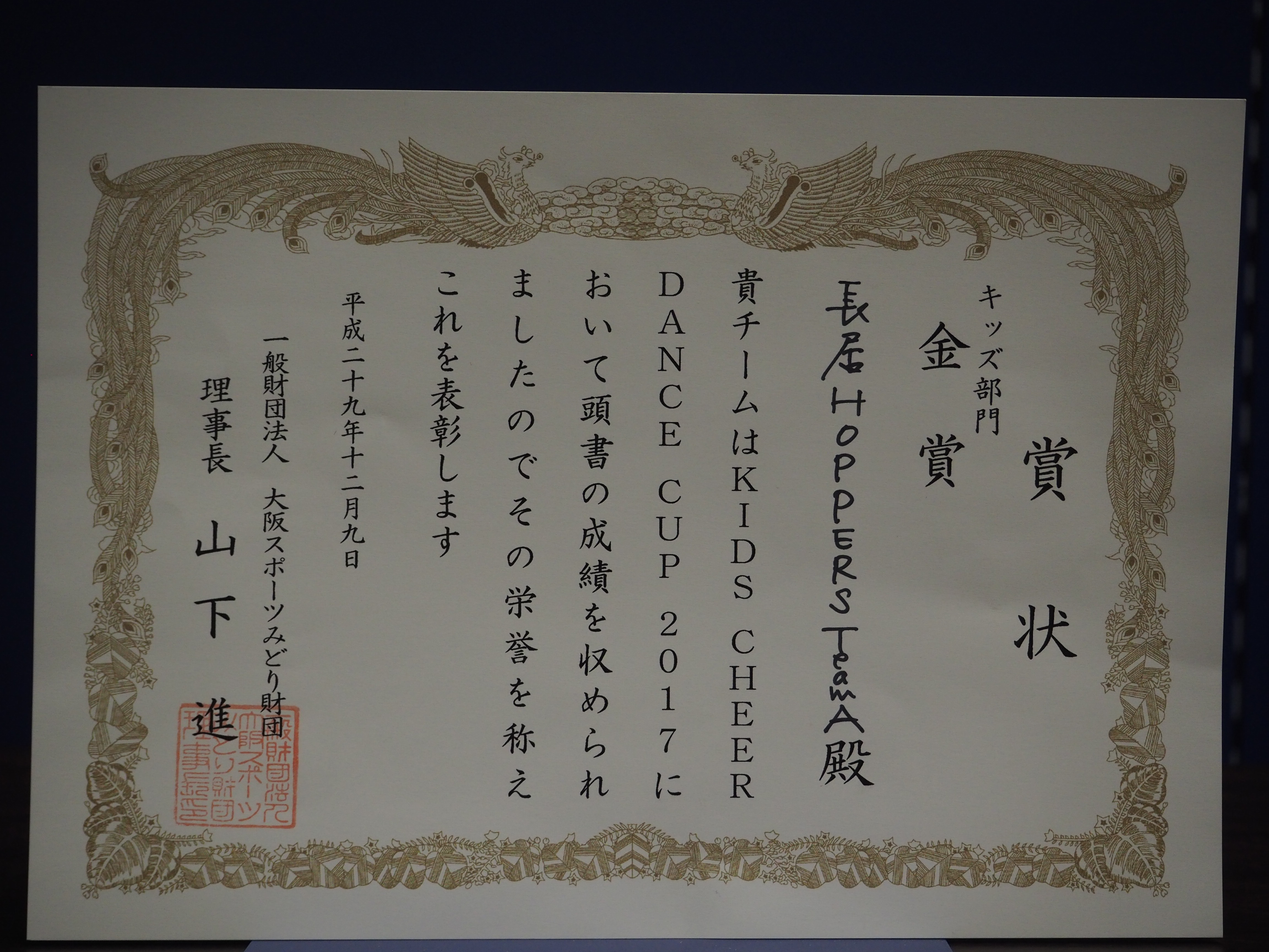 12月9日(土)に大阪市中央体育館で開催された「KIDS CHEERDANCE CUP 2017」に今年も出場した長居HOPPERS