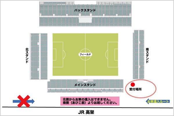 ・メインスタンド南側にお越しください。