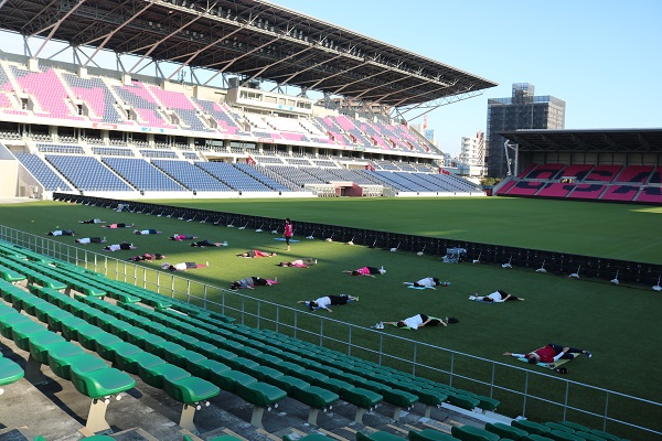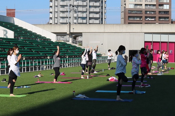 10月16日(土)ヨドコウ桜スタジアムにて、朝ヨガイベントを開催しました。