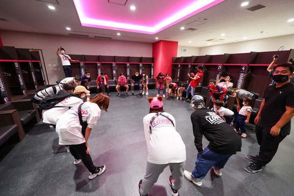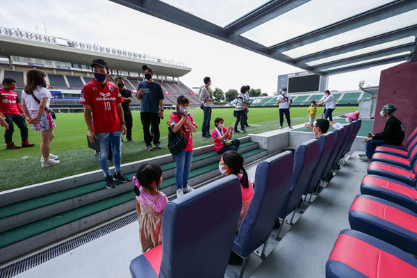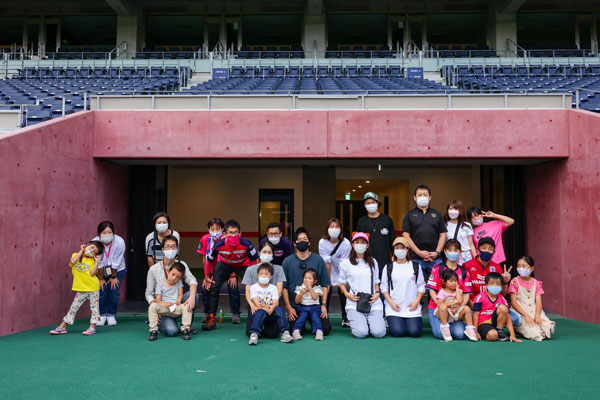 スタジアムツアーに参加したみなさんには、ホーム側のロッカールームで円陣を組んだり、ベンチに座って写真を撮ったり、普段見ることのできない場所に入ったりと、スタジアムの魅力を肌で感じていただきました。