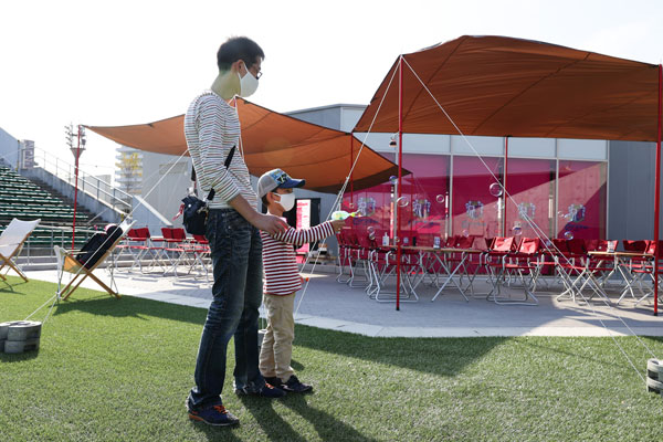 空いた時間は人工芝部分を自由に使って、みなさん思い思いに楽しんでいました。