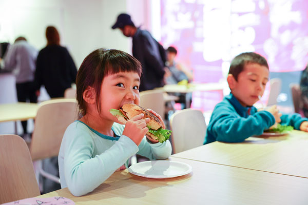 朝ヨガでお腹も空いたので、朝食の時間です。表面を焼いたパンに食材を挟んだ「特製スタジアムサンド」です。いただきまーす!