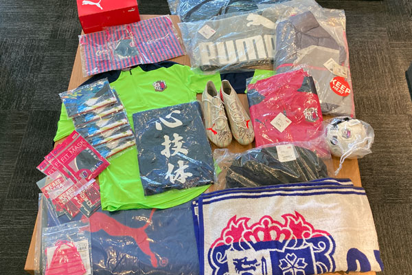 選手サイン入りスパイクやチームトレーニングシャツ、2021レプリカユニフォーム Limited(森島社長座右の銘「心技体バージョン」)など、多種多様なグッズをご用意しております。