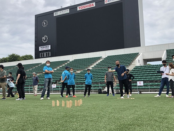 当日は、初めてモルックを楽しみますというチームや、日本代表経験のある選手が所属されているような上級レベルのチームまで、多数のチームの皆様にご参加いただきました。初のスタジアム開催(人工芝エリア)ということで、若干の緊張感と、慣れない人工芝でのモルックに戸惑い気味ではありましたが、慣れてくるとコツをつかんで素晴らしいプレーが随所に見られました。