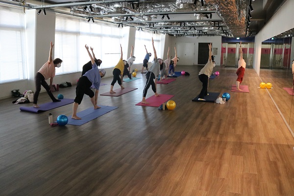 健康体操(45分)で身体を整えてから、ヨガ(45分)を行います。