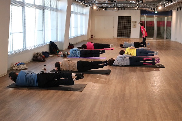 次に、お腹まわりの筋肉を強化するエクササイズを行いました。