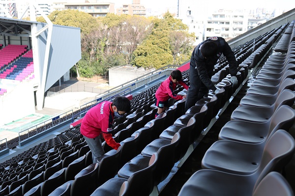お越しいただくファン、サポーターの皆さんに、ヨドコウ桜スタジアムで少しでも快適に過ごしていただくために、次の通り「ヨドコウ桜スタジアム清掃活動」を実施いたします。なお、今回はヨドコウ桜スタジアムのスタンド座席および敷地内の美化もお手伝いいただく予定です。