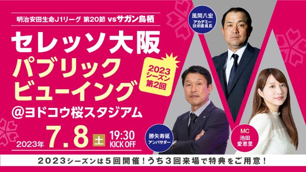 明治安田生命J1リーグ第20節サガン鳥栖戦におきまして、「2023シーズン第2回セレッソ大阪パブリックビューイング@ヨドコウ桜スタジアム」を開催いたします。