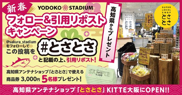 ヨドコウ桜スタジアム【公式】Xアカウントにて、新春お年玉企画 高知県コラボボキャンペーン第2弾を実施いたします。