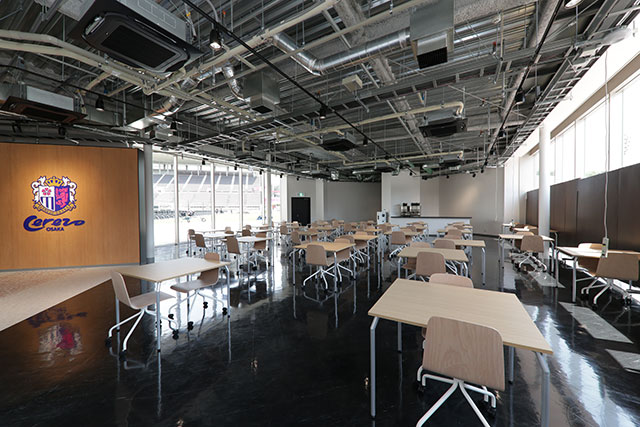 ヨドコウ桜スタジアム内の大人数対応ルームである「大会議室②(記者会見室)」と「1階エントランス」